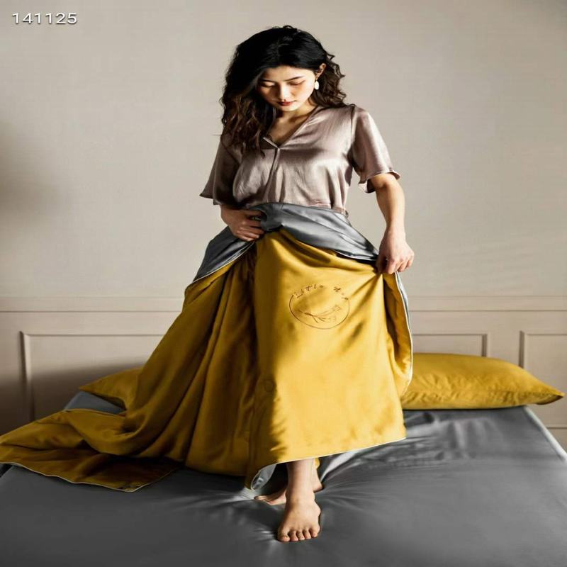 60天絲純色夏被羽絨被套裝天絲面料洗滌尺寸穩定性好,洗滌收縮率小。面料具有美麗的光澤,柔軟舒適的手感具有絲綢般的獨特觸感,優雅的懸垂性。它具有良好的透氣性和透濕性。