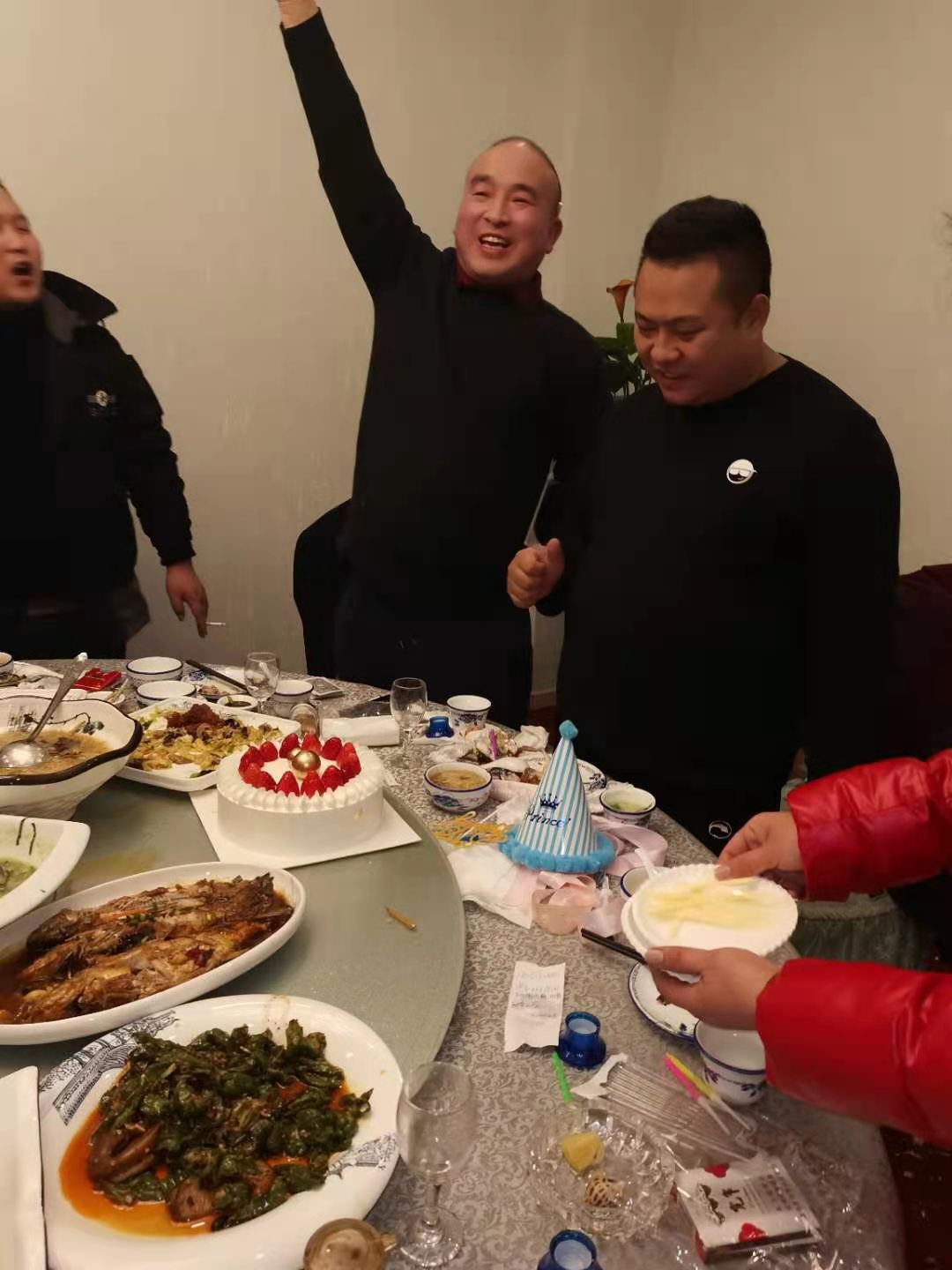 我們的老板楊永勝 (milldle one) 和我們一起慶祝員工的生日 ,我們就像家人一樣。